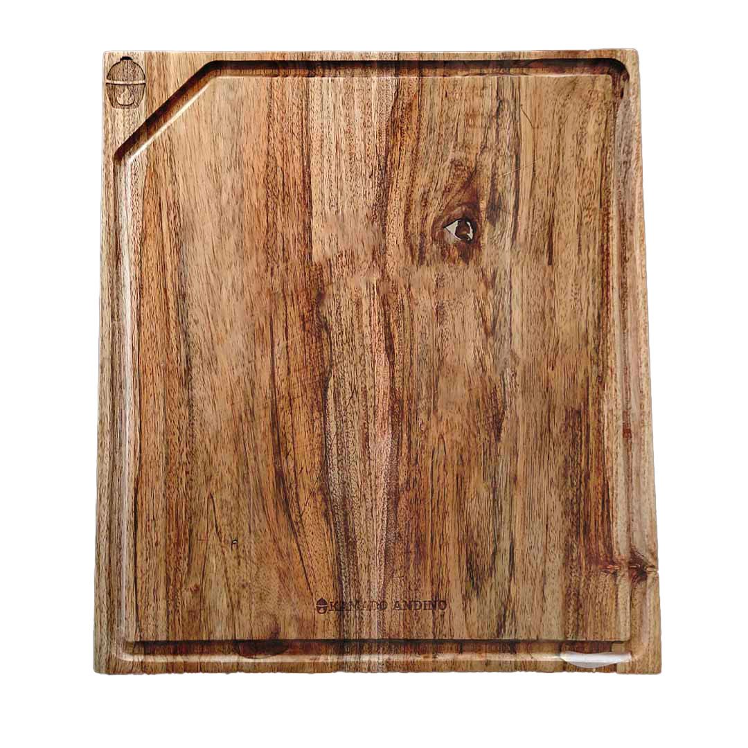 Es el accesorio perfecto para tus asados. Nuestra tabla de cortar de madera para carnes de 50×30 cm esta diseñada con zurfos en los filos lo que permite recoger los líquidos derramados, manteniendo tu área de trabajo limpia y ordenada.