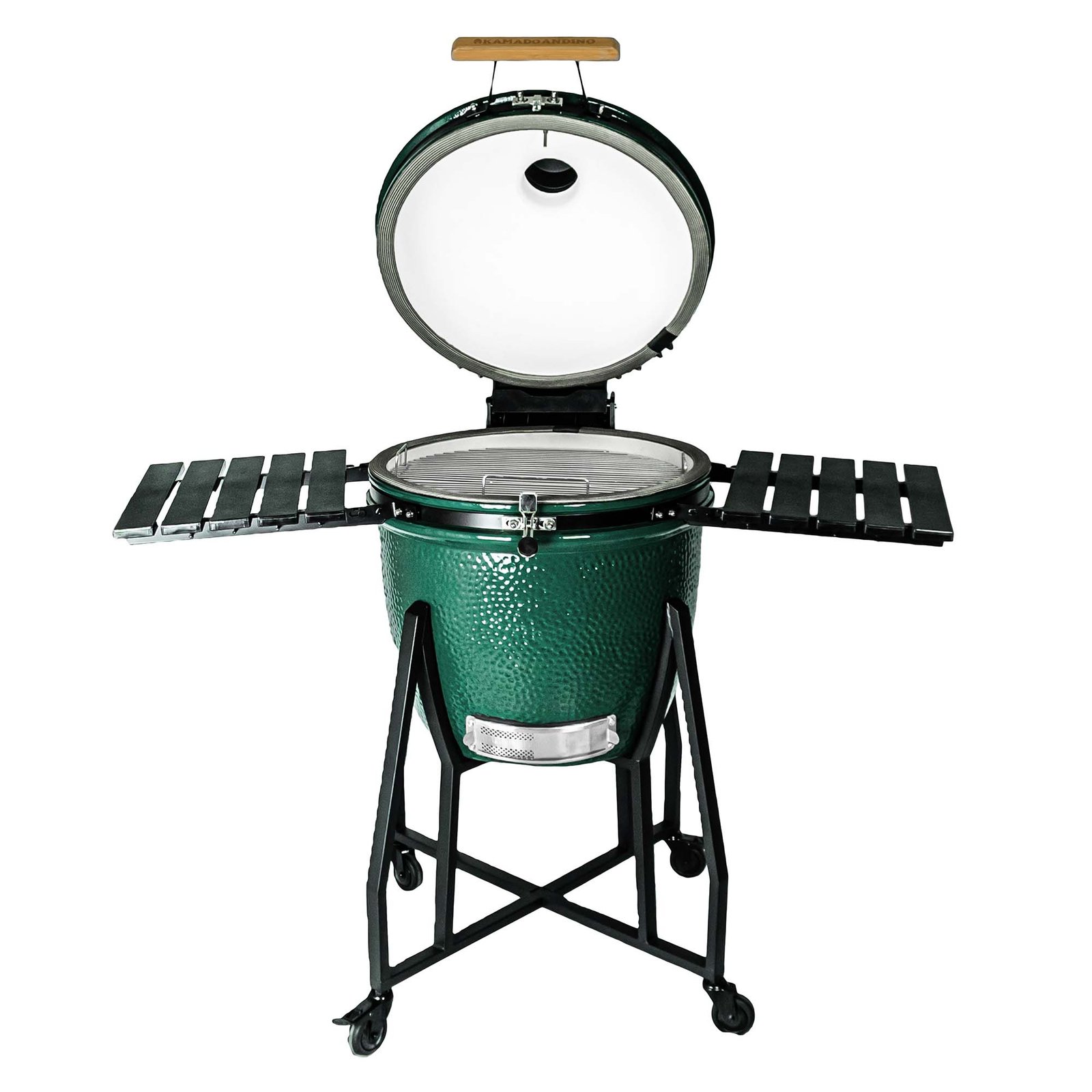El modelo Large-Básico de Kamado Andino tiene un diámetro de 57 cm y por su capacidad permite cocinar hasta 40 libras de carne por tanda, ideal para piezas grandes como 2 piernas de cerdo, 3 costillares St. Louis o 3 briskets enteros.